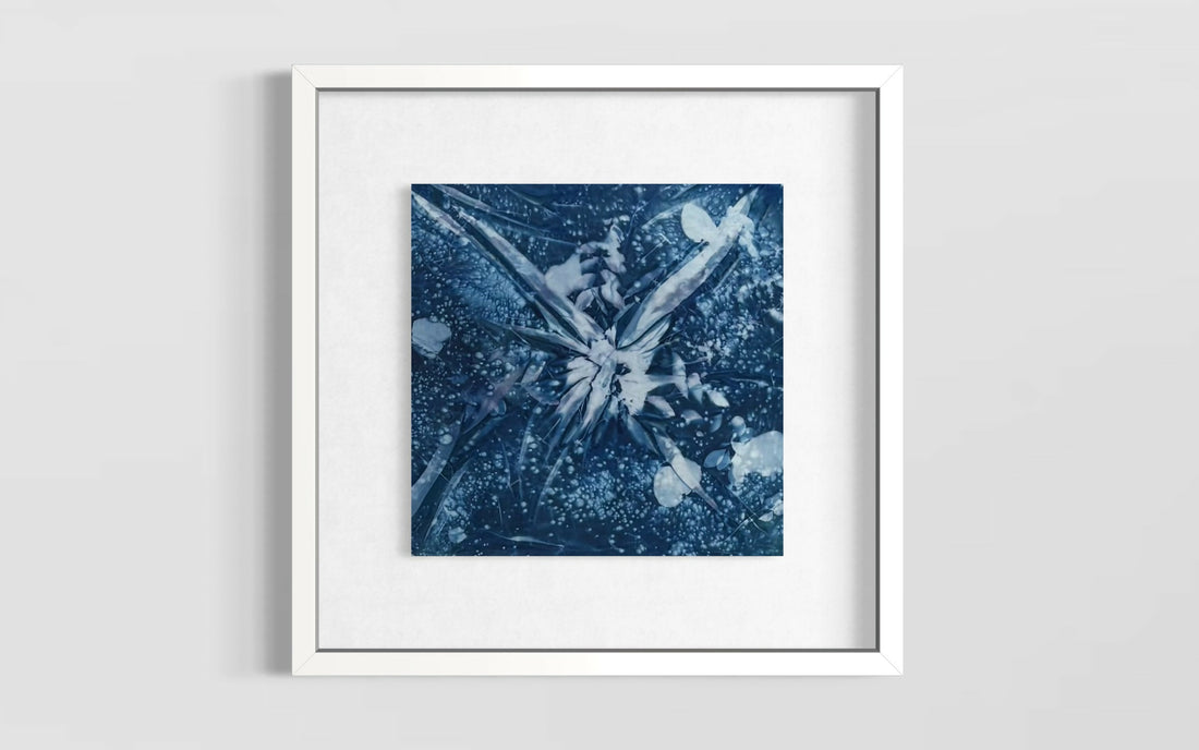 Cyanotype over silk.30x30cm In Midnight Crystal, I work silk as if it were a surface...