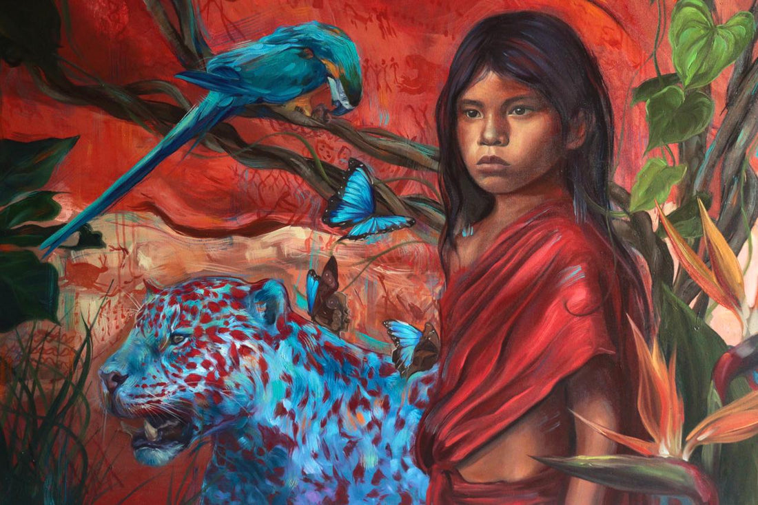 Childhood alongside the jaguar, heliconias, macaws, insects, serpents, and plants sharing the same space symbolize...